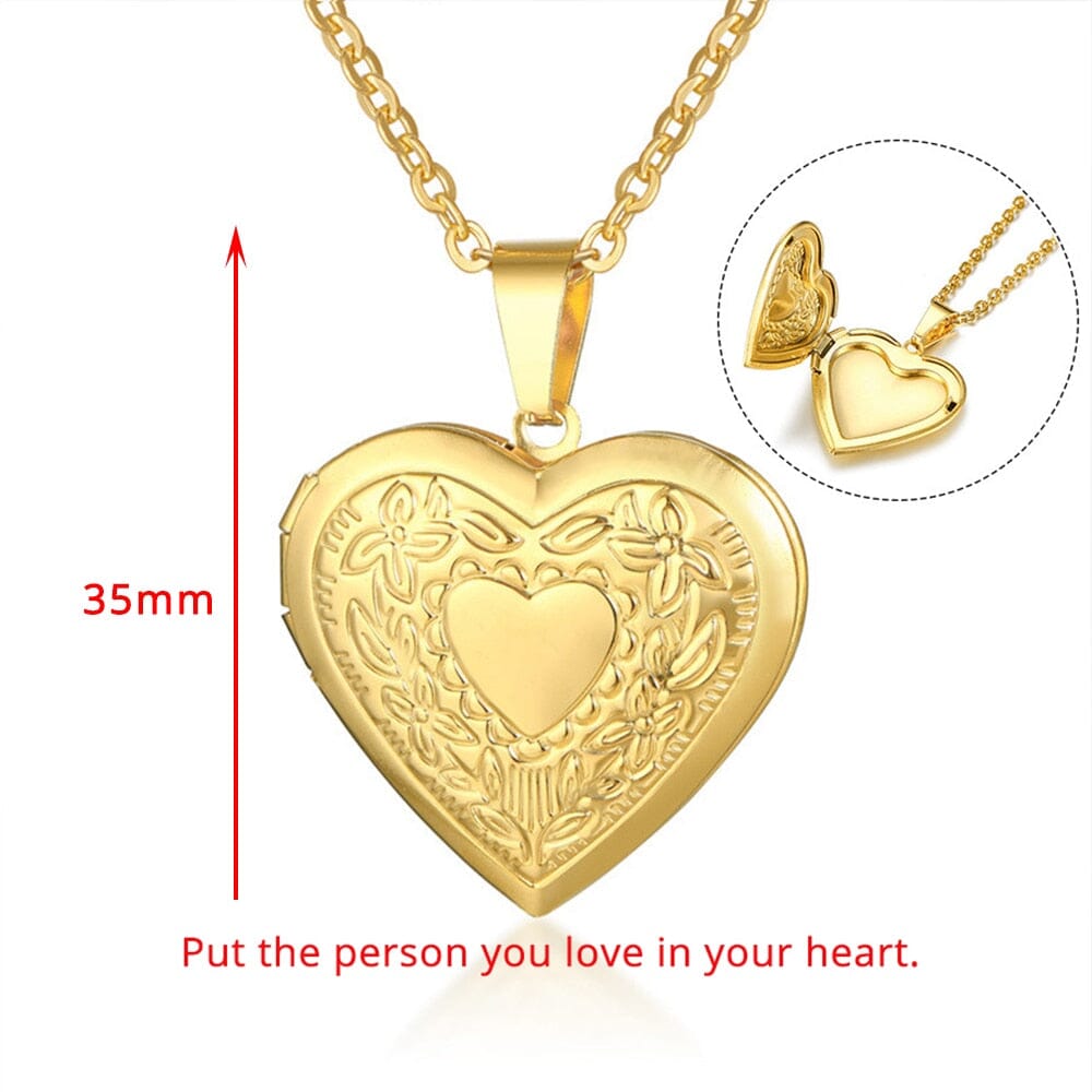 Heart Locket Pendants Necklaces For Women Gold Color photo frame Valentine lovers Necklace 45/66cm Gift Jewelry